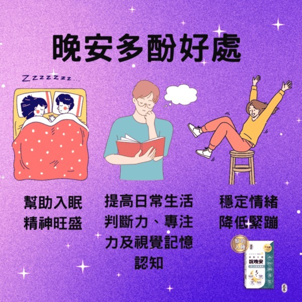 睡眠品質並不是有睡著就可以,以下只要其中一項有符合皆是適合補充晚安多酚來幫助。