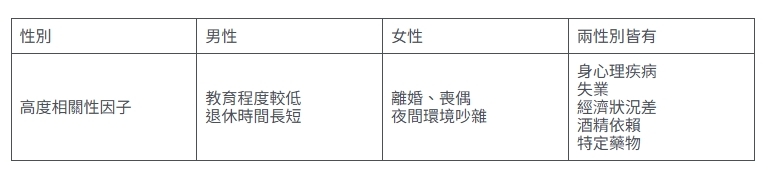 研究中針對失眠原因與性別相關較高的因子討論