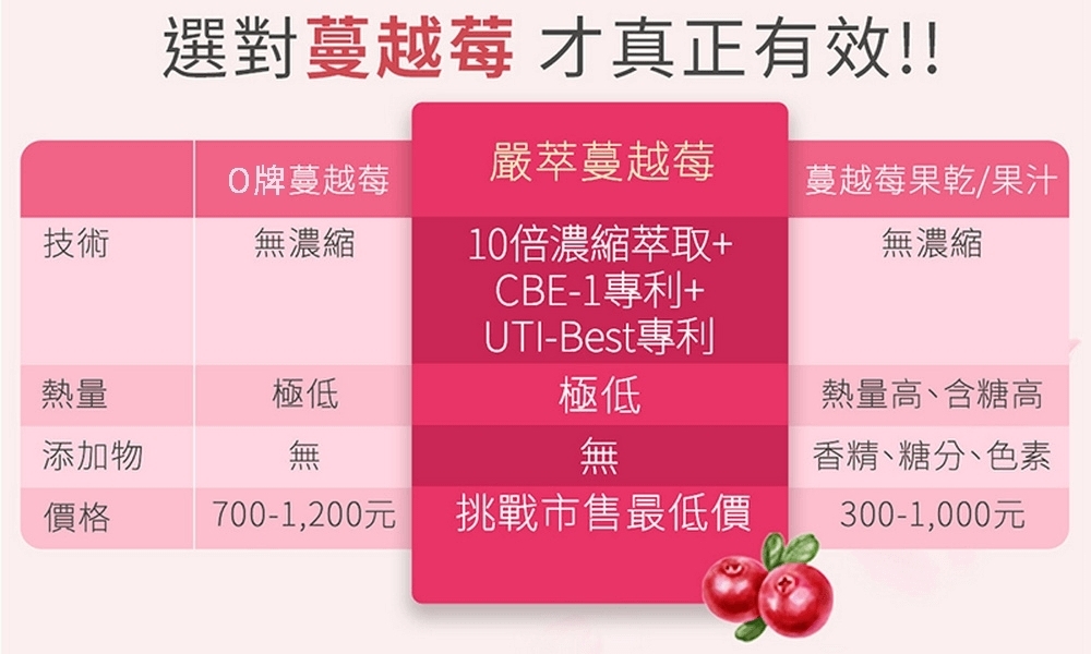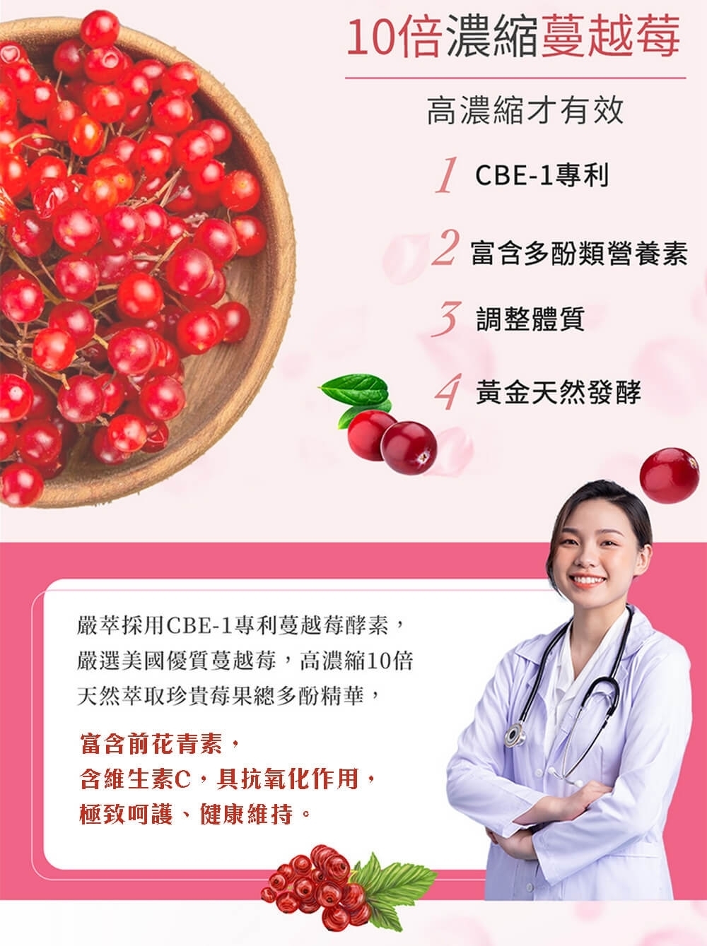✔高濃縮10倍天然萃取蔓越莓(專利CBE-1)