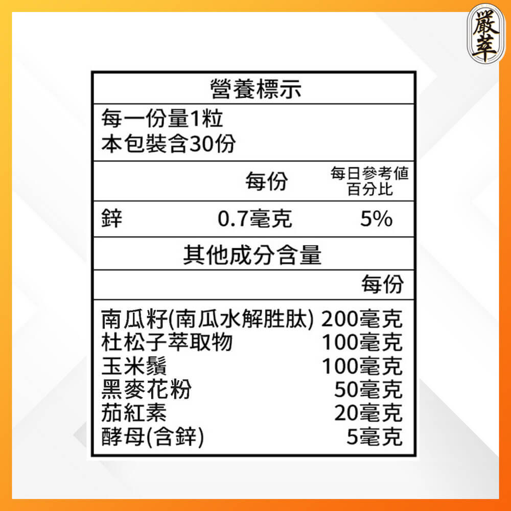 ✔含鋅維持生殖機能
