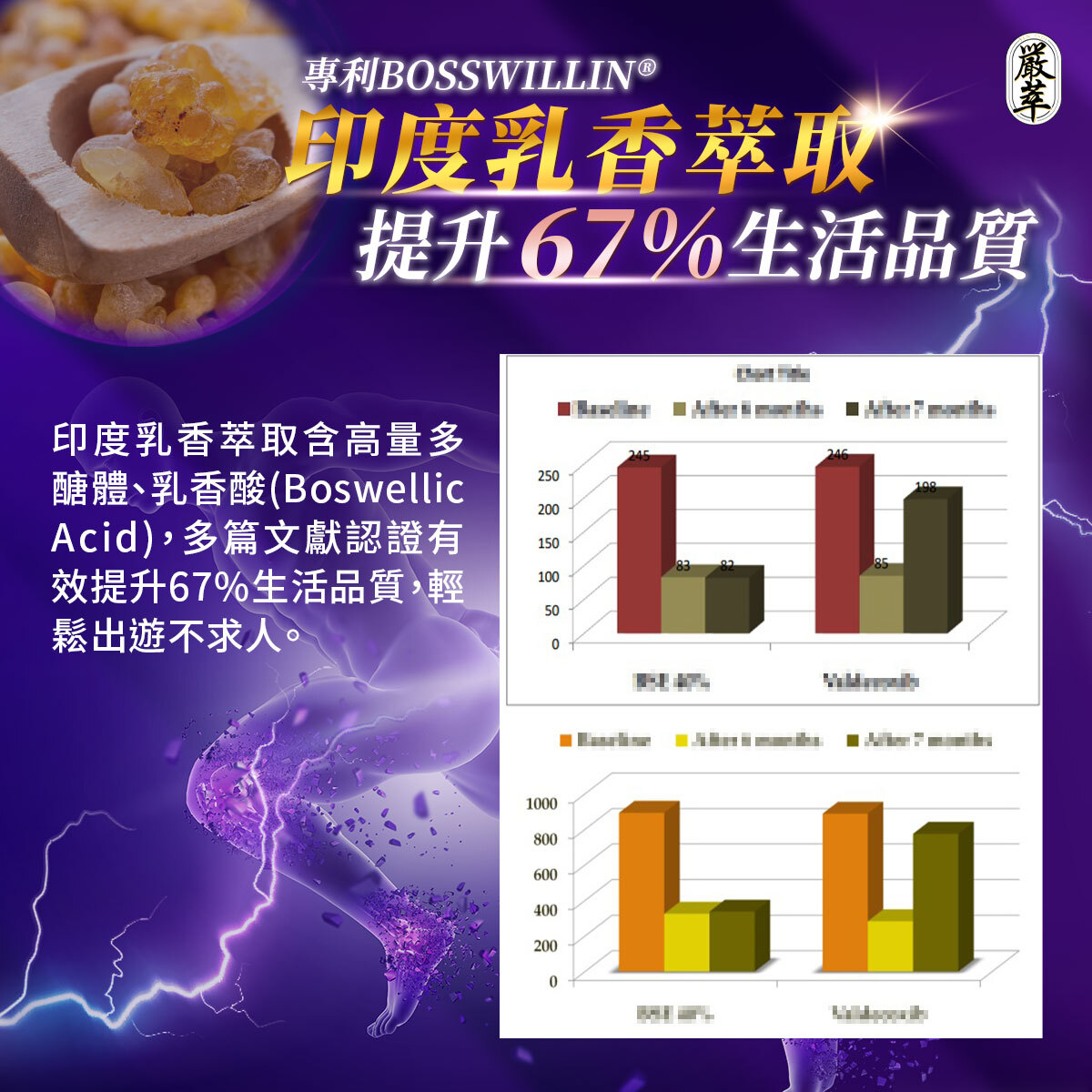 ✔ 加入BOSSWILLIN®乳香、TamaFlex®羅望果薑黃、OptiMSM®甲基硫醯基甲烷,多篇實驗證實有效。