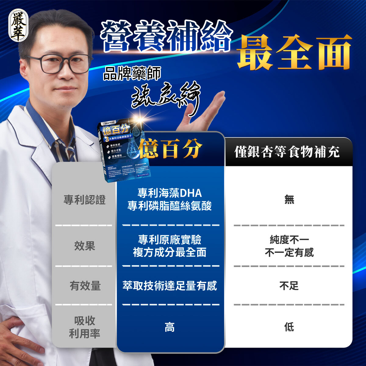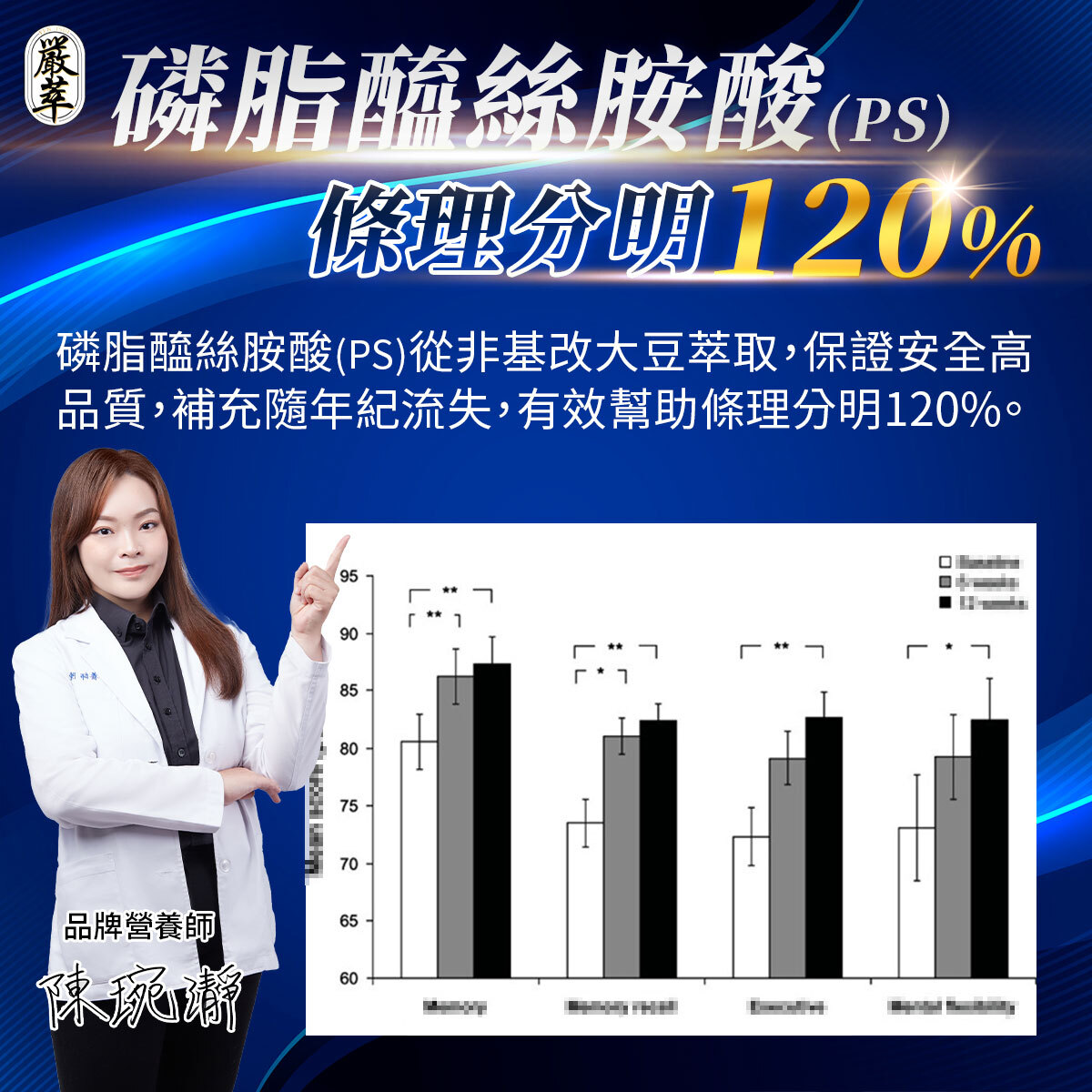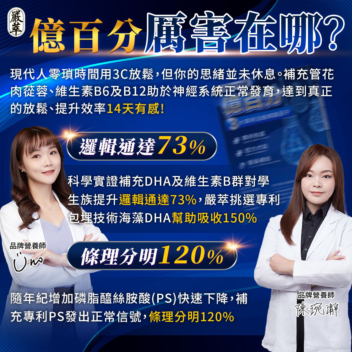 ✔ 專利海藻DHA吸收率150%,磷脂醯絲胺酸補充年齡流失營養,維持專注與條理分明。