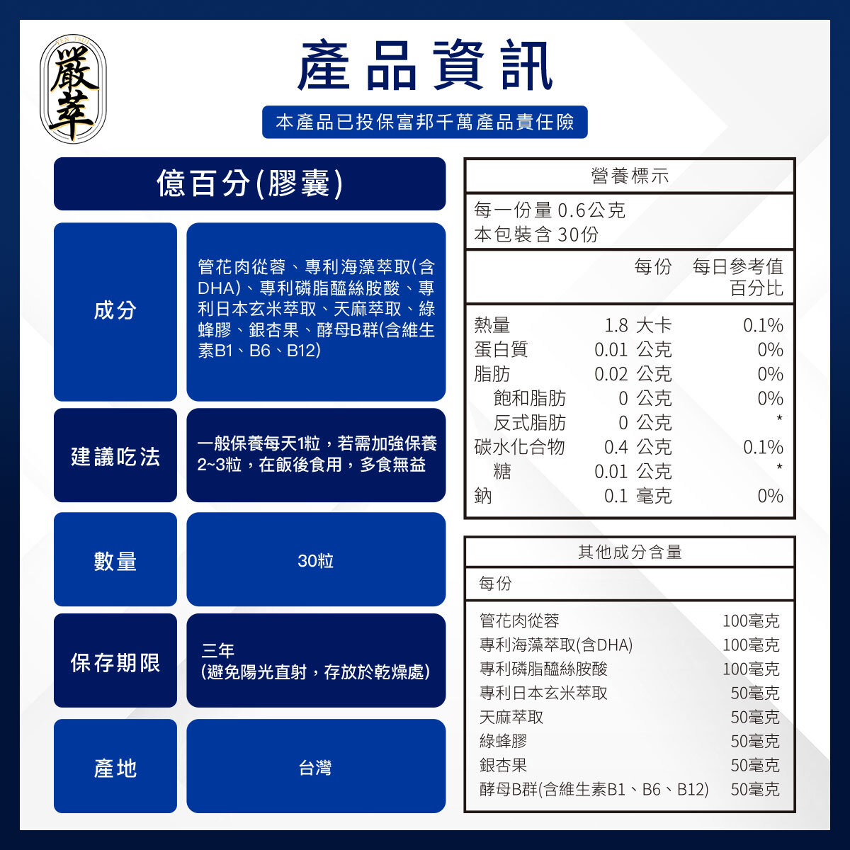 ✔ 高含量管花肉蓯蓉,比市售高出2倍,搭配專利海藻DHA與磷脂醯絲胺酸,全面調節生理機能。